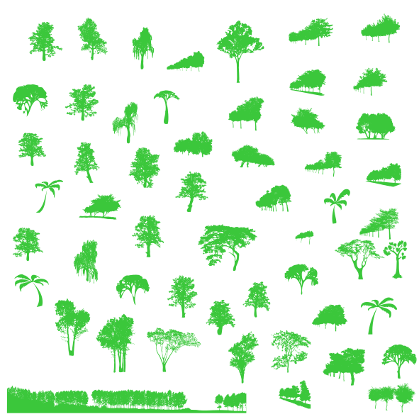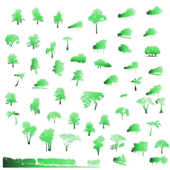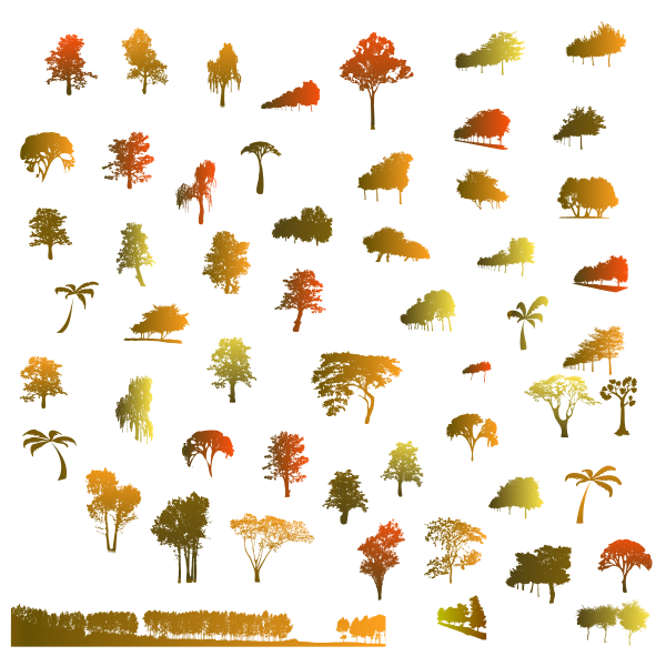 Here comes the ultimate ULTIMATE tree pack! The biggest pack so far. 52 trees in 10 colour combinations, that is 520 trees altogether. With these, you will have a complete set of trees for your illustrations. Full colours and gradients, spring, summer and autumn colours.